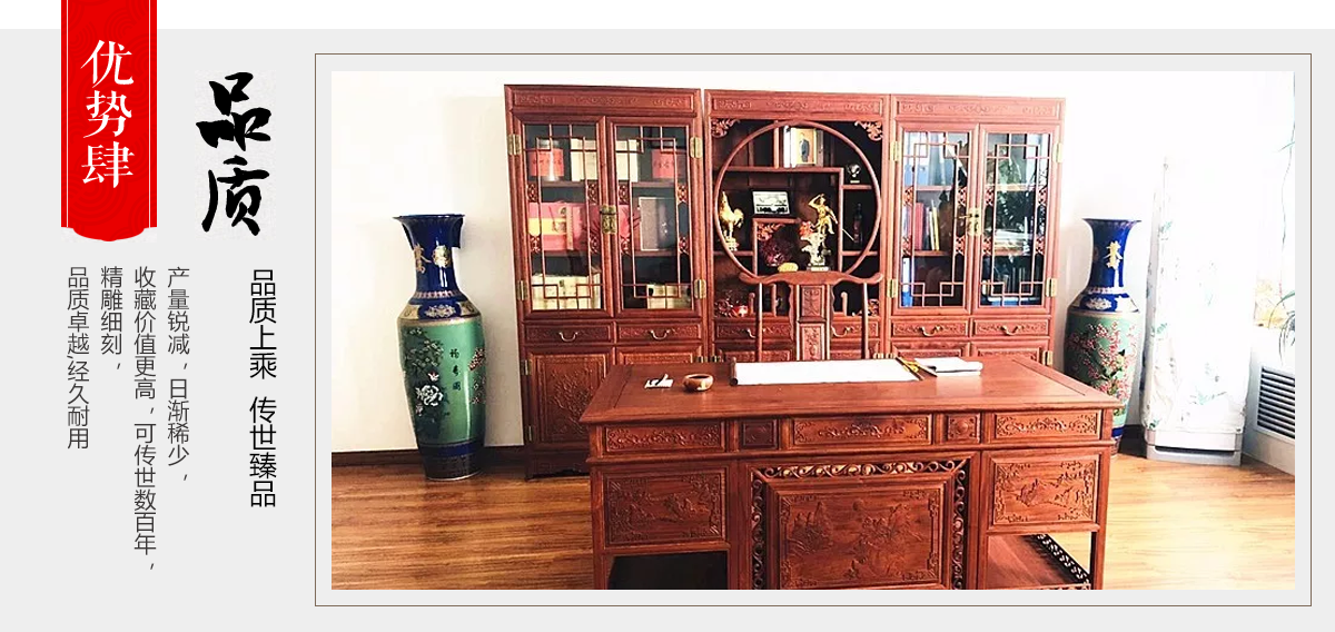 東陽市大聯(lián)福林堂紅木家具廠座落于素有“東方好萊塢”之稱的國家AAAAA級影視旅游基地橫店影視城, 是一家集開發(fā)、設(shè)計、生產(chǎn)、銷售、服務(wù)為一體的綜合型企業(yè)。本公司匯集一批具有豐富生產(chǎn)經(jīng)驗(yàn)的能工巧匠,具有豐富的紅木家具設(shè)計生產(chǎn)經(jīng)驗(yàn)。本公司產(chǎn)品主要選用紫檀、花梨、酸枝、雞翅等優(yōu)質(zhì)紅木,并采用純天然蜂蠟飾面。經(jīng)過蒸煮、脫脂、烘干、定型等多道工序嚴(yán)格處理,福林堂紅木始終嚴(yán)格秉承“質(zhì)量第一”、“信譽(yù)至上”的經(jīng)營理念,在繼承傳統(tǒng)工藝的基礎(chǔ)上,不斷創(chuàng)新,大力引進(jìn)先進(jìn)家具設(shè)備、烘干設(shè)備,實(shí)現(xiàn)了現(xiàn)代生產(chǎn)工藝與傳統(tǒng)表現(xiàn)手法的有機(jī)相融。